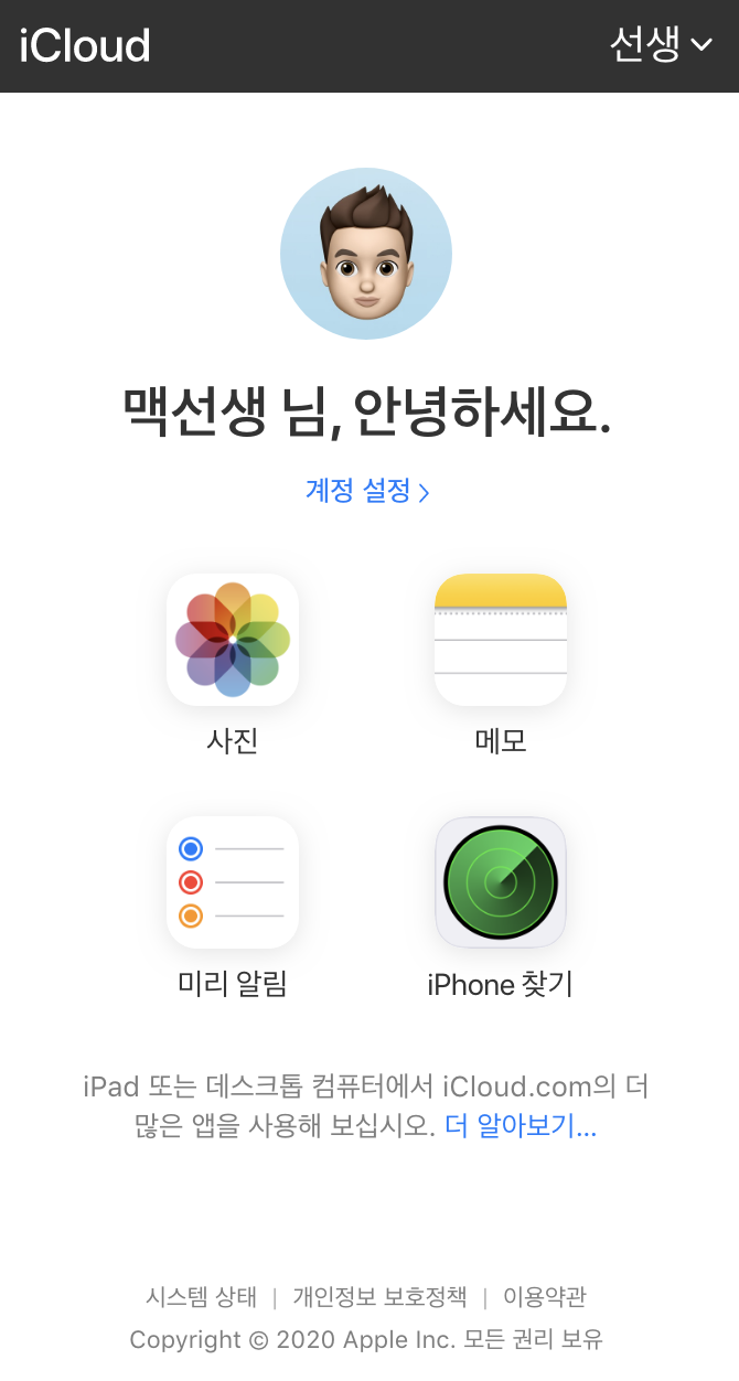 아이클라우드 모바일 버젼을 사용할 수 있게 되었습니다.