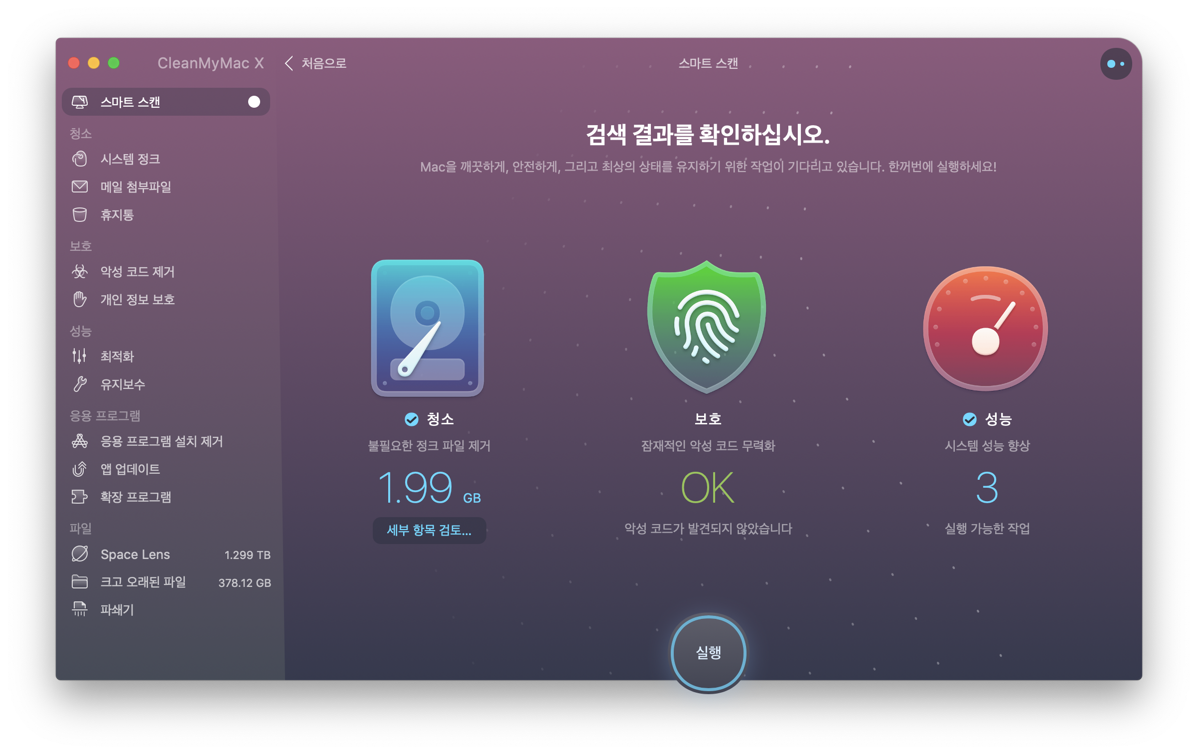 - 청소: 불필요한 맥의 정크 파일을 제거합니다.