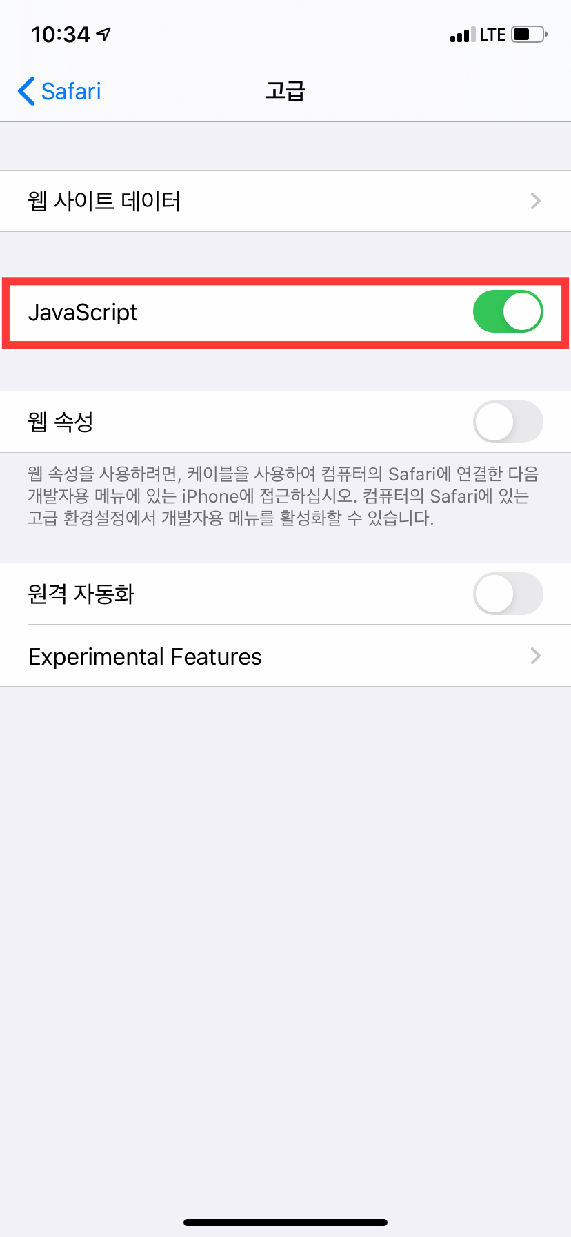 고급 내에서 JavaScript를 켜주시면 됩니다. 그럼 완벽하게 아이폰 팝업 차단 해제가 됩니다.