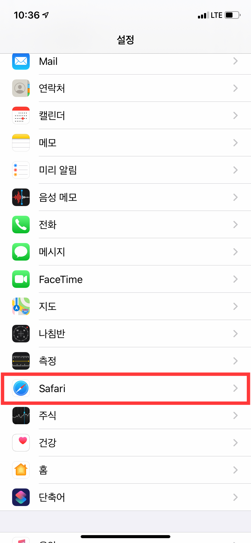 아이폰 설정에 들어가서 '사파리'를 찾습니다. 이곳에서 아이폰 팝업 차단 관련 설정을 해줄 수 있습니다.