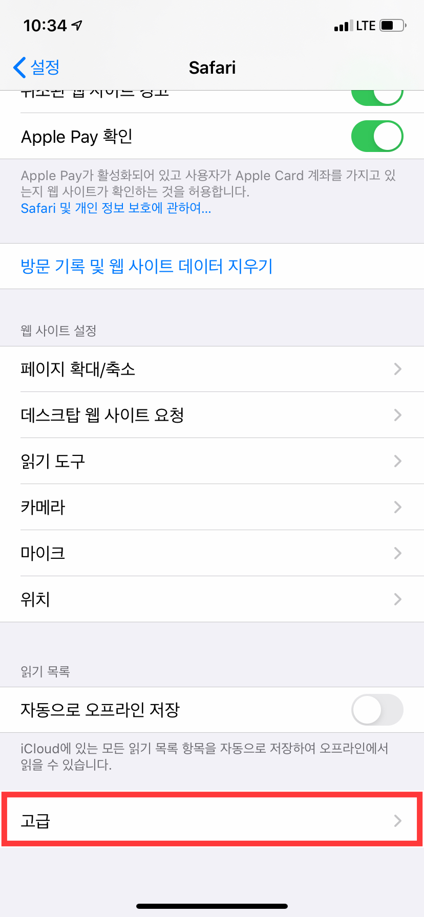 ▼ 그래도 안된다면.... 설정 - 사파리 - 고급