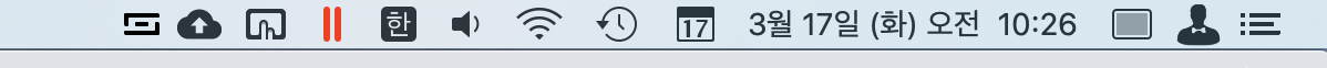 맥을 사용하다보면 상단에 있는 메뉴바가 아이콘들로 채워지게 됩니다. 저는 여러 앱을 사용하는 것을 즐기다 보니 메뉴바가 꽉 차버렸습니다. 심지어 왼쪽부터 오는 프로그램의 메뉴와 오른쪽부터 오는 아이콘들이 만나기도 했습니다.
