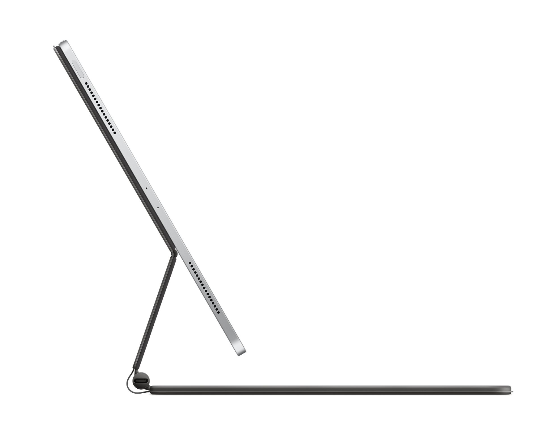 노트북보다 기울일 수 있는 각도보다 훨씬 좁습니다. 아이패드의 무게가 꽤 나가기 때문에 더 기울인다면 무게 중심이 맞지 않아 뒤로 쓰러질 것입니다. 아마 매직 키보드를 만들 때 아이패드를 잘 지탱해주면서 최대한 많이 기울일 수 있는 각을 찾기 위해 노력했을 것입니다. 아마 그 최대각이 130도인가 봅니다.