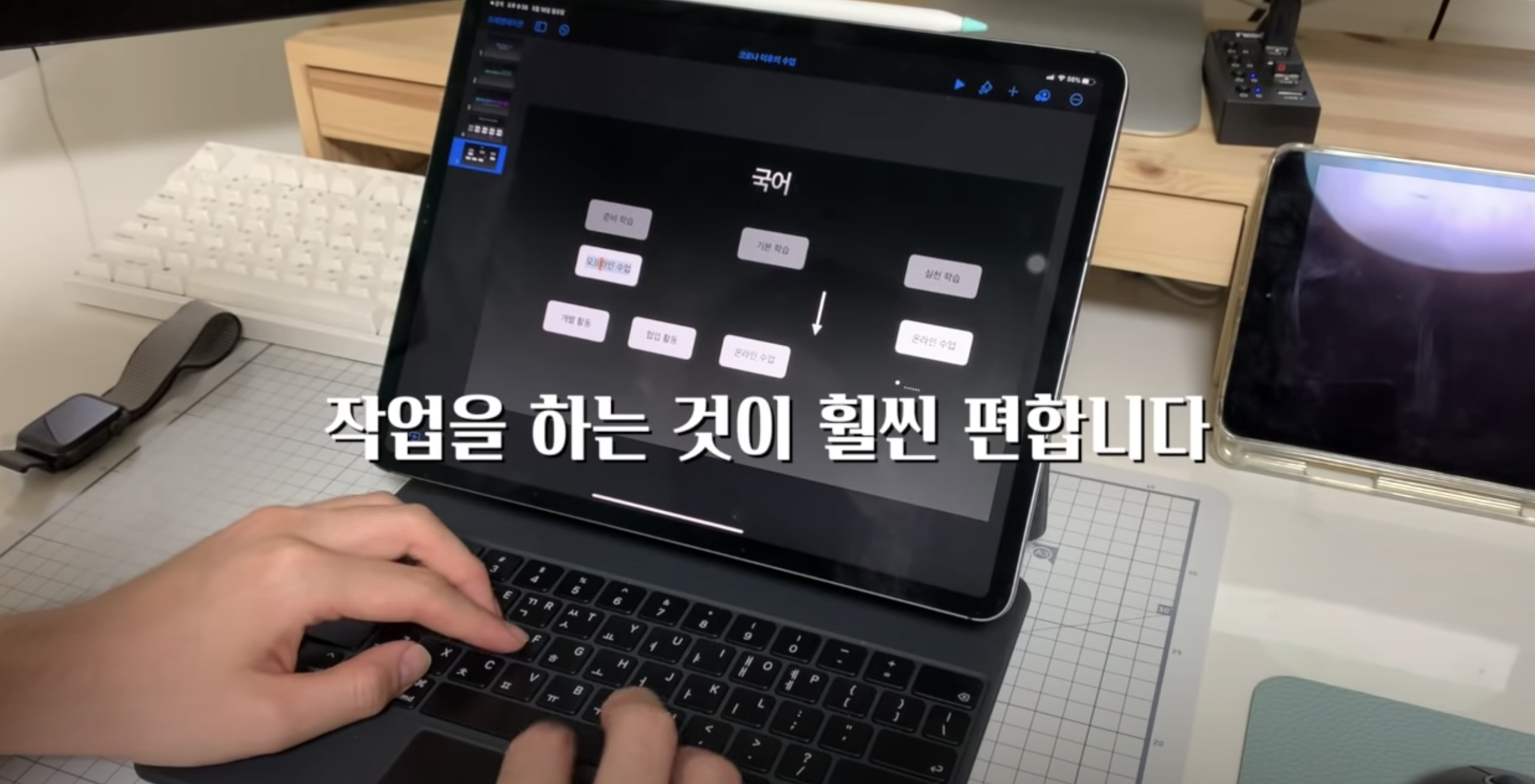 역시나, 마우스로 아이패드를 조작하는 것 보다 매직 키보드의 트랙패드로 작업을 하는 것이 훨씬 편합니다. ipad os는 트랙패드를 위한 포석이 아니였을까 하는 생각이 들 정도입니다.